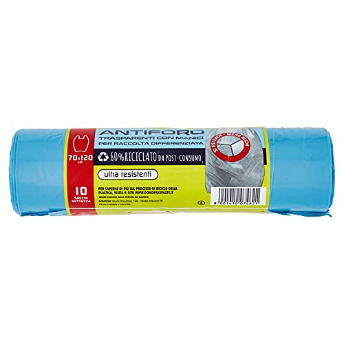 Domopak Spazzy Sacchi Nettezza Antiforo Con Manici - Raccolta Differenziata - Condominiale 110 Lt - Azzurro Trasparente - 330 g
