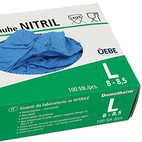 Domotherm Guanti da Visita in Nitrile, Misura 8 - 8.5/L (Confezione da 100 Pezzi di Guanti Monouso)