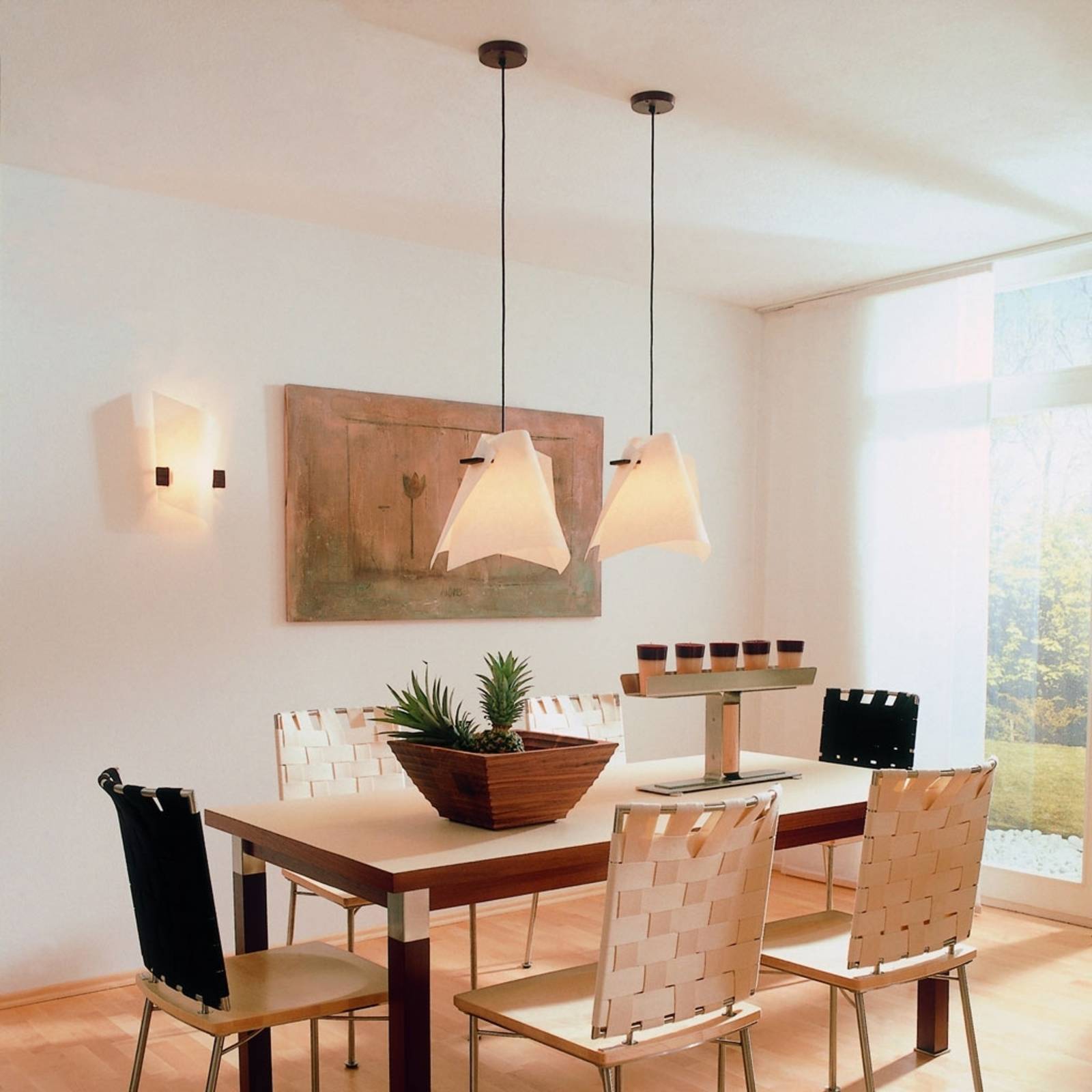 Versatile lampada a sospensione Plan B con paralume di Lunopal in due parti I due elementi in Lunopal, leggermente arcuati, sembrano due fogli di carta e sono collegate tra loro da un elemento in legno, con cui formano un paralume di bella forma. Plan B è una lampada a sospensione che può essere installata ovunque: in camera da letto, in soggiorno o in un ingresso. Come dimostrano le immagini, è possibile installare più lampade in fila per creare un sistema d'illuminazione originale, su misura per l'ambiente. Il Lunopal è una plastica simile alla carta con un effetto luminoso molto particolare, che convince anche sotto l'aspetto della funzionalità: è resistente ai raggi UV, non ingiallisce e può essere lavato senza problemi. Un prodotto ecosostenibile realizzato a mano nel rispetto degli gli standard di qualità made in Germany, secondo una filosofia che mette l'uomo e l'ambiente al centro della produzione di lampade. Fondata nel lontan