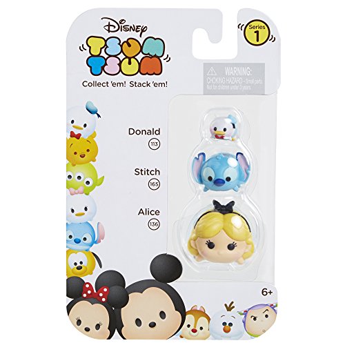 Now You Can Collect, Stack and Display a Mash Up of all your favorite Disney personaggi in a Totally New, Whimsical scale. Each Tsum Tsum Pack includes 3 different sized figures (Small, Medium, and Large). This Set includes Paperino, Stitch, and Alice. they' re Too Cute, Collect them all.