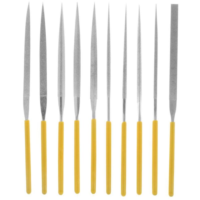 Dettagli tecnici Dimensione del prodotto, lunghezza 140 mm 10 pz lime diamantate 10 lime con rivestimento in diamante per materiali duri come acciaio, vetro, ceramica. Fornitura con pratica custodia: piatta, circolare, semicircolare, triangolare, quadrata. Testo tradotto automaticamente. Caratteristiche Lunghezza di taglio 70 mm Manico isolato. Incluso nella consegna null Requisiti di sistema null