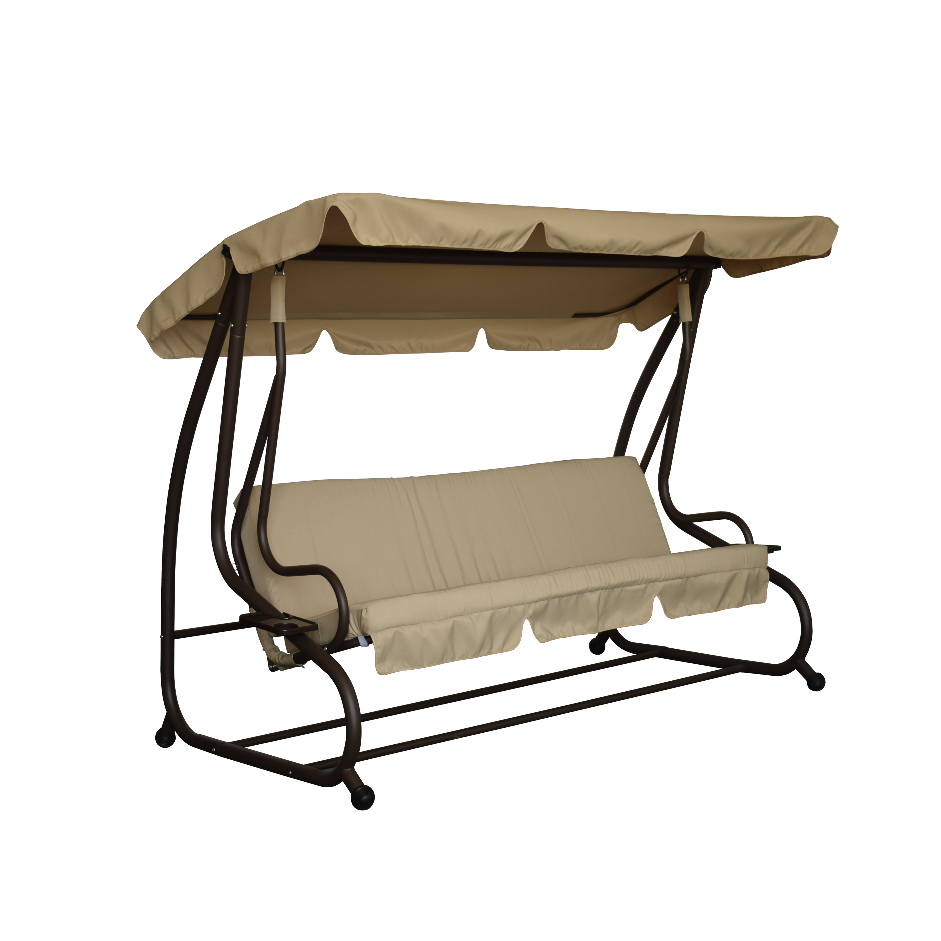 Dondolo di colore marrone,materiale principale acciaio. Questo dondolo è facilmente sistemabile in giardino o in terrazzo. La seduta può essere trasformata in un comodo letto per 2 ospiti