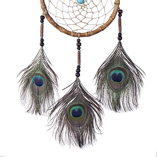 DonDon Acchiappasogni Dreamcatcher Grande con Perle e Vere Piume Marrone Noce - Ø 17 cm
