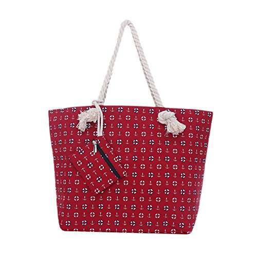 DonDon Borsa da spiaggia grande con chiusura zip 58 x 38 x 18 cm Shopper stile marinaro rosso