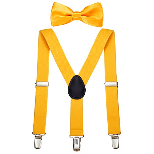DonDon Set bretelle bambino e papillon giallo elastici e regolabili per bambini da 1 a 8 anni