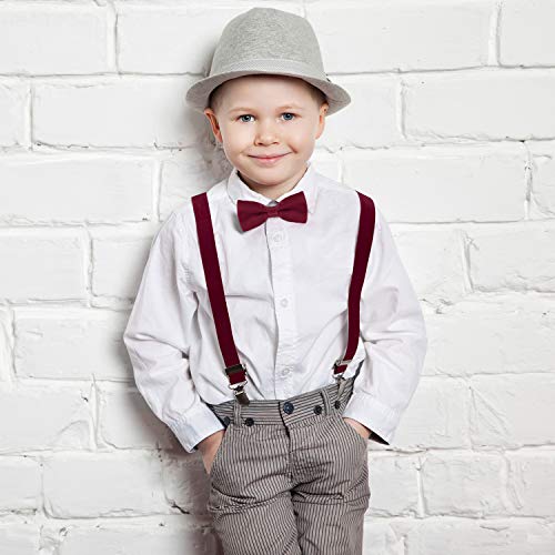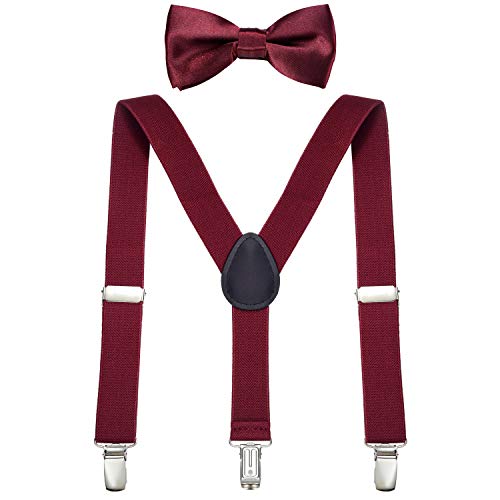 DonDon Set bretelle bambino e papillon rosso scuro elastici e regolabili per bambini da 1 a 8 anni