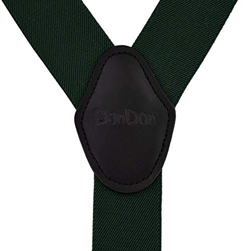 DonDon Bretelle uomo larghe 3,5 cm 4 clips in pelle a y - elastiche e regolabili, a quadrati verdi