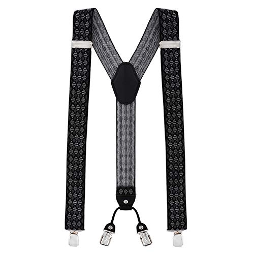 DonDon Bretelle uomo larghe 3,5 cm 4 clips in pelle a y - elastiche e regolabili, a quadrati neri grigi e bianchi