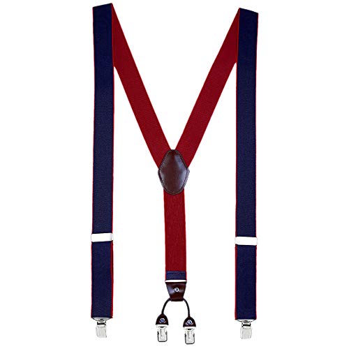 DonDon Bretelle uomo 3,5 di larghezza con 4 clip in pelle marrone a forma di Y elastiche e regolabili blu scure