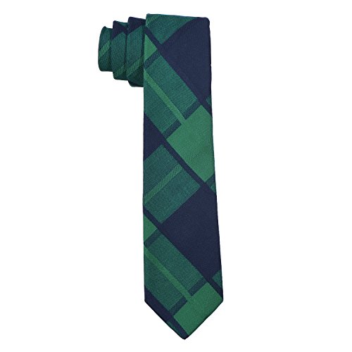 DonDon cravatta di cotone stretta a quadri da uomo 6 cm - verde blu