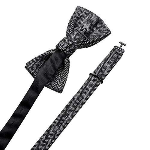 DonDon papillon cotone a quadri da uomo in stile tweed 12 x 6 cm già legato e infinitamente regolabile - nero-grigio spina di pesce