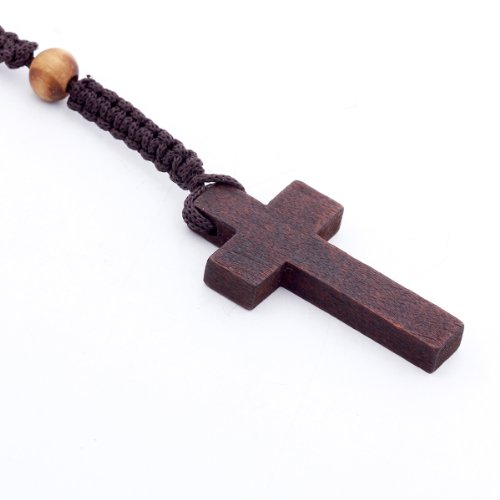 DonDon Rosario in legno con perle marrone chiaro e croce marrone scuro