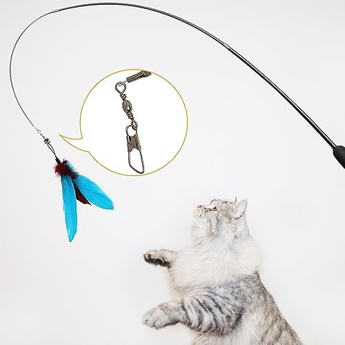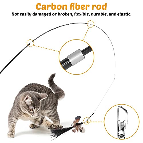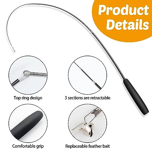 DONGKER Bacchetta Interattivi per Gatti,Giocattoli Bacchette Retrattile per Cannetta da Pesca per Gatto Ridurre la Noia (Non Incluso Ricambio Piume)