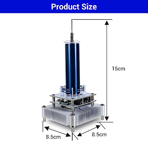 EFFICACE SCARICO DEL CALORE: la bobina Tesla è dotata di una potente ventola che si avvia automaticamente quando la bobina è in funzione. Inoltre, la parte inferiore della bobina Tesla è costituita da un grande dissipatore di calore in alluminio che garantisce un'efficace dissipazione del calore. Grazie a questo efficace raffreddamento, la bobina Tesla può funzionare più a lungo senza problemi di surriscaldamento, aumentando la sua durata e le prestazioni.