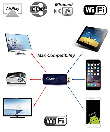 Il Dongle DLNA HDMI TV Miracast supporta sia compatibilità iPhone Airplay e Android .Max per Android 4.2.2, IOS 6.1 sopra. Può essere aggiornato online e funziona bene mentre Andriod, i sistemi IOS sono aggiornati.
