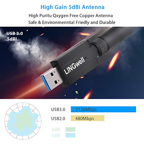 SuperSpeed USB 3.0 port: USB 3.0 supporta velocità di trasferimento fino a 5 GHz - -volte più veloce di USB 2.0, garantisce la connessione Internet WiFi Adapter massime prestazioni di throughput e più stabile.Ti consente di avere più velocità di internet per fare il video streaming HD senza interruzioni e giochi, godere la velocità Internet via cavo. Retrocompatibile con dispositivi USB 2.0 e 1.1.