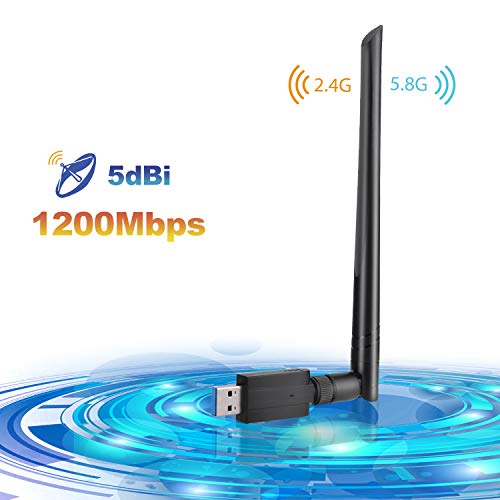 Dongle WiFi 1200 Mbps Dual Band (2.4g 300 m/5G 867 m) 802.11 ac wireless USB 3.0 WiFi compatibile con 5DBI antenna adattatore di rete wireless per PC/Desktop/laptop/tablet, compatibile con Windows 10/8.1/8/7/Vista/XP/Mac OS