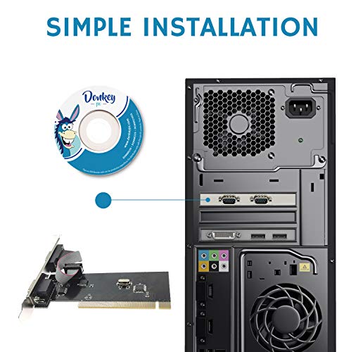 Donkey pc - Scheda di espansione PCI a 2 porte seriali DB9 PCI pin RS232 adattatore scheda per computer ideale per stampanti Ticket, lettori di codici e simili.