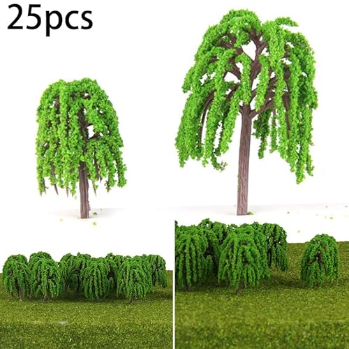 Donkivvy 25 alberi di salice modello in miniatura, paesaggio artificiale modello 5,1 cm, salice piangente per fai da te treno ferroviario paesaggio