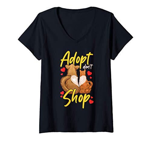 Donna Cute Cat & Dog Adopt Don't Shop Maglietta con Collo a V