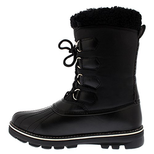 Donna Anatra Impermeabile Pioggia La Neve Inverno Foderato di Pile Caldo metà Polpaccio Stivali - Nero Nylon - UK5/EU38 - YC0502