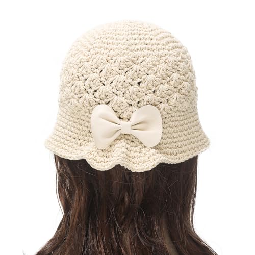 ZLYC Donna Autunno Inverno Maglieria Cappello da Pescatore Cappello a Bombetta con Decoro Fiocco