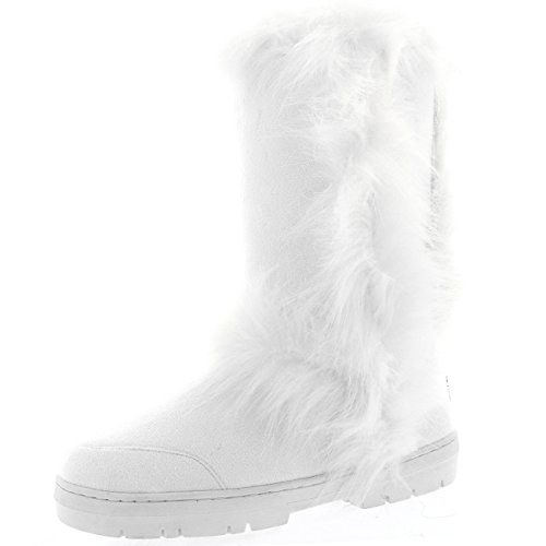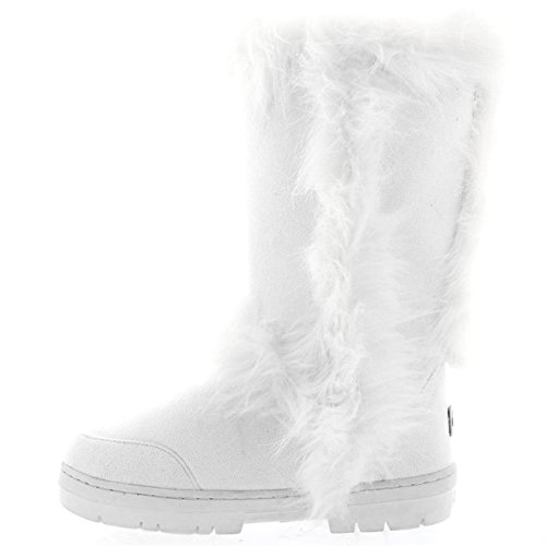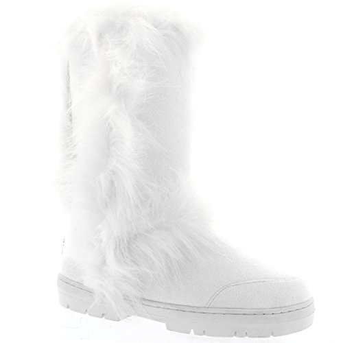 Donna Lungo Bordo in Pelliccia Fully Foderato di Pelliccia Impermeabile Inverno La Neve Pioggia Stivali - Bianca - UK7/EU40 - BA0487