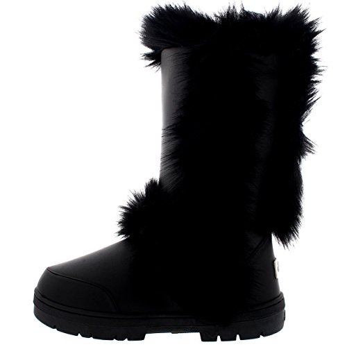 Donna Lungo Bordo in Pelliccia Fully Foderato di Pelliccia Impermeabile Inverno La Neve Pioggia Stivali