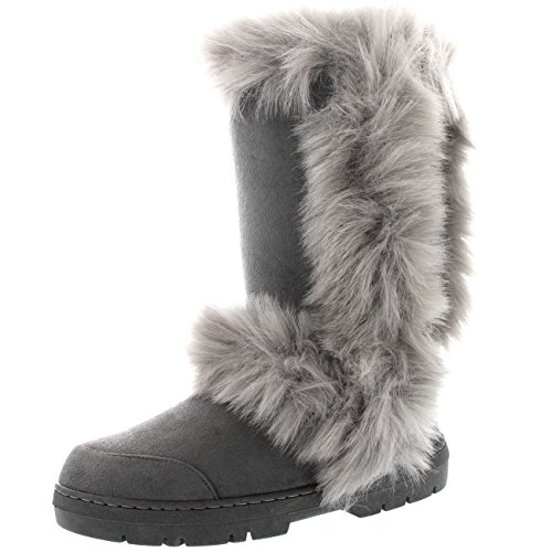 Donna Lungo Bordo in Pelliccia Fully Foderato di Pelliccia Impermeabile Inverno La Neve Pioggia Stivali - Grigio - UK7/EU40 - BA0488