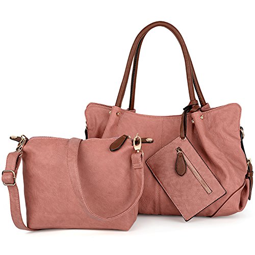 UTO Donna Borsa 3 Pezzi Set Pelle Sintetica Borse Tote+Piccola Borse a Tracolla+Portafoglio Bracciale Rosa