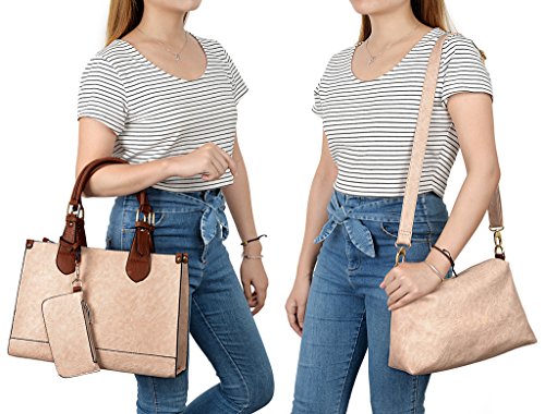 UTO Donna Borsa 3 Pezzi Set Pelle Sintetica Borse Tote+Piccola Borse a Tracolla+Portafoglio Bracciale