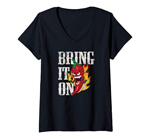 Donna Bring It On, Peperoncino divertente, cibo piccante, Curry Maglietta con Collo a V