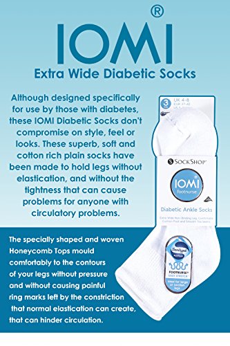 IOMI - 3 paia uomo e donna calzini cotone corti senza elastico per diabetici in nero e bianchi (43-45 eur, White (Short))