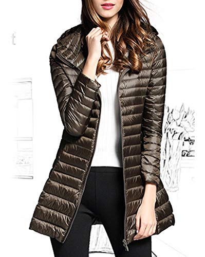 Donna Cappotto Incappucciato Piumino Ultraleggeri Trapuntato Packable Giacca con Cappuccio Army Green Large