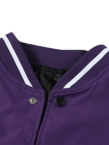 Donna Casual Baseball Giacche Manica Lunga Oversize Lettera Ossa Ricamo Giacca Cappotto Autunno Inverno Streetwear, Viola, XL
