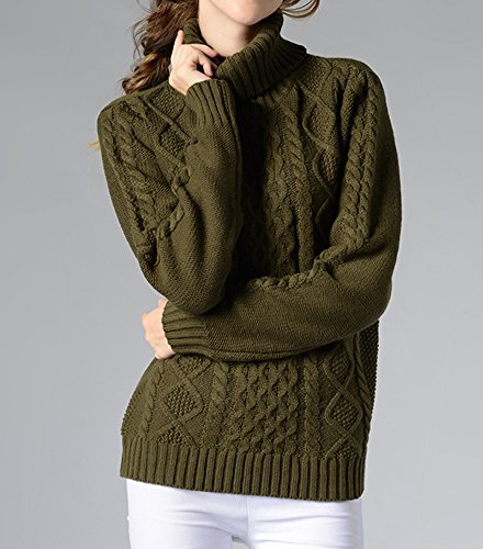 Donna Casuale Collo Alto Maniche Lunghe Pullover Maglia Maglione Tops Esercito Verde L
