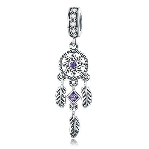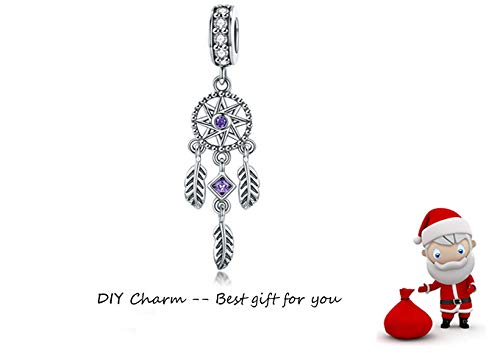 Donna Charms,Dream catcher Pandora perline con ciondoli in zircone viola per ciondoli di moda Accessori per gioielli braccialetto e collana