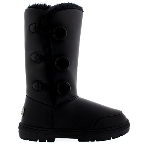 Donna 3 Classico Pulsante Pioggia Foderato di Pelliccia Scarpe Stivali - BLL39 AEA0285