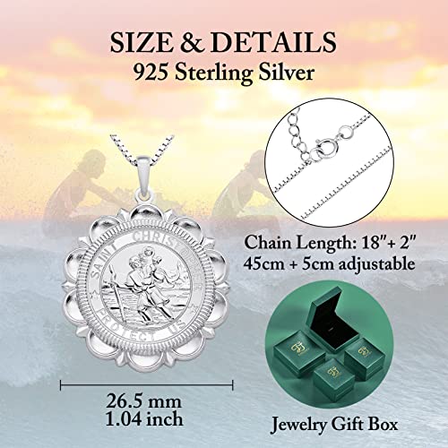 FJ Donna Uomo Collana San Cristoforo Argento 925 Ciondolo Talismano Protettore Religioso Catena 45+5cm