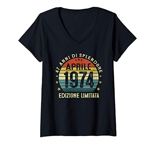 Donna 47 Anni Compleanno Uomo Donna Regalo Vintage Aprile 1974 Maglietta con Collo a V