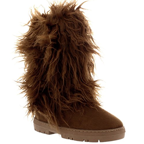 Donna Pelo Lungo Coperto Pioggia Foderato di Pelliccia Inverno Stivali - TAN39 AEA0376