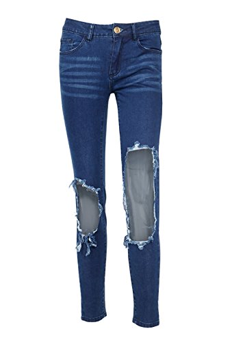 Wink Gal Donna Destroyed Denim Sdrucito Sbiadito Slim Fit Strappato Jeans Boyfriend