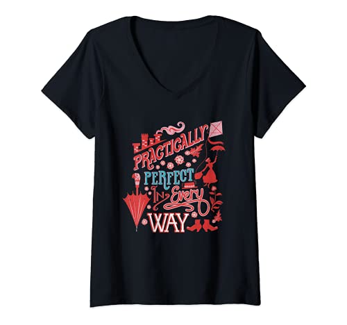 Donna Disney Mary Poppins Practically Perfect In Every Way Maglietta con Collo a V