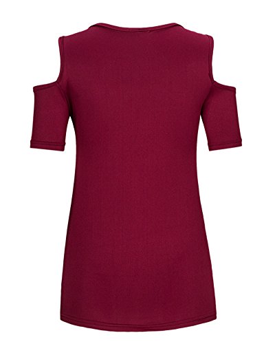 Donna Elegante Maglietta Maniche Corte Casual Collo V T-Shirt Tops Rosso 4XL