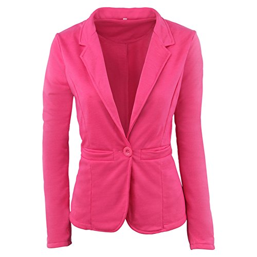 Donna Elegante Manica Lunga Ufficio Giacca Tuta Piccolo Slim Fit Blazer Rose XL