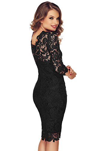 Miss Grey Donna Elegante Vestito Pizzo Floreale Cocktail Abito da Cerimonia Maniche Lunghe Aderente Midi Bodycon da Sera