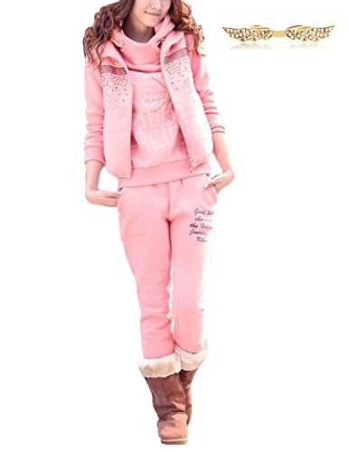 BYD Donna 3pcs Felpa Tute Felpa con Cappuccio Cappotto Tuta con Strass Training Ispessisce Abbigliamento Sportivo Giacca + Pantaloni + Gilet