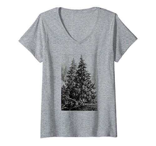 Donna Foresta albero di pino Natura botanica al di fuori del pino Maglietta con Collo a V