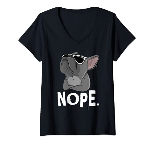 Donna Nope French Bulldog Francese Frenchie Maglietta con Collo a V