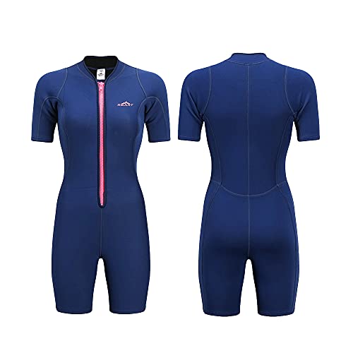 Muta 2 mm da uomo e donna con zip frontale in neoprene muta a maniche corte, per surf, nuoto, snorkeling (donna, blu, XL)